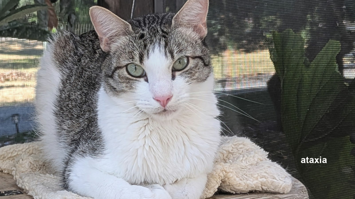 SNAP Cats rescued Sage from Fresno, CA. Sage, and his sister, Isa, are very sweet, affectionate kitties. They love attention, and will follow you around for pets and rubs. Sage's (and Isa's) ataxia is mild+. His back end sways side-to-side a bit when he walks/runs. But he doesn't fall or need any kind of assistance to get where he wants to go, including atop cat tress, shelves and counters. Sage (and Isa) will make a wonderful addition to anyone looking for an affectionate, loving kitty!